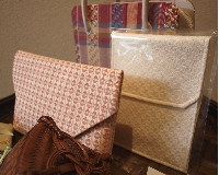 hechiオリジナルの手織り生地による利休バッグ、数寄屋バッグなど